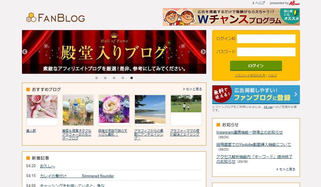 A8netの場合はファンブログという独自のブログサービスが存在します。